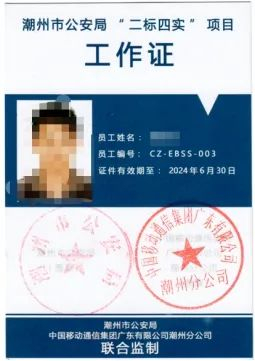 信息采集人员将身着统一工作服,佩戴由潮州市公安局和潮州移动联合监制的双盖章工作证。市民可通过信息采集人员随身佩戴的工作证和身份证确认采集人员身份。