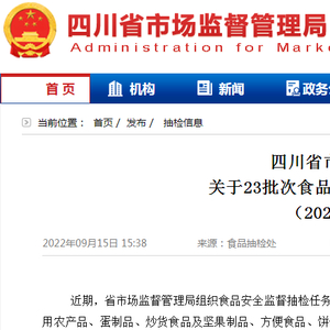 中国质量新闻网讯 2022年9月15日,四川省市场监督管理局网站发布关于23批次食品抽检不合格情况的通告(2022年第21号)。