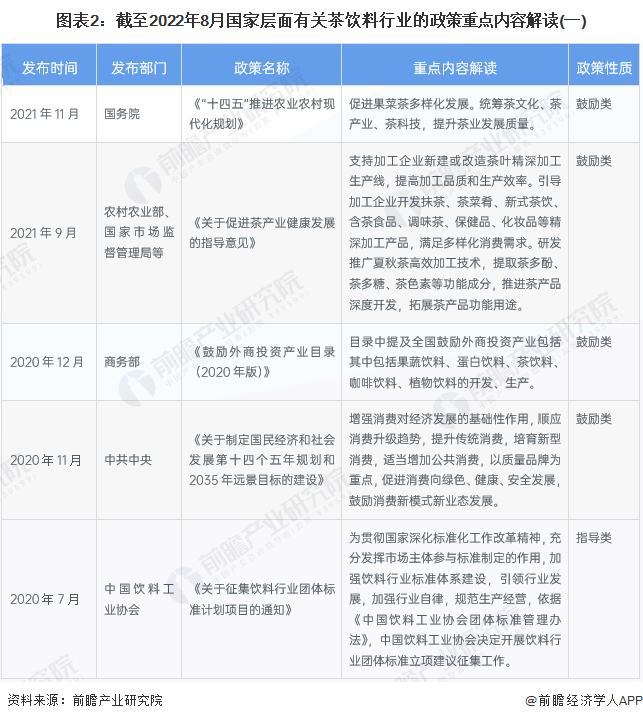 重磅!2022年中国及31省市茶饮料行业政策汇总及解读(全)