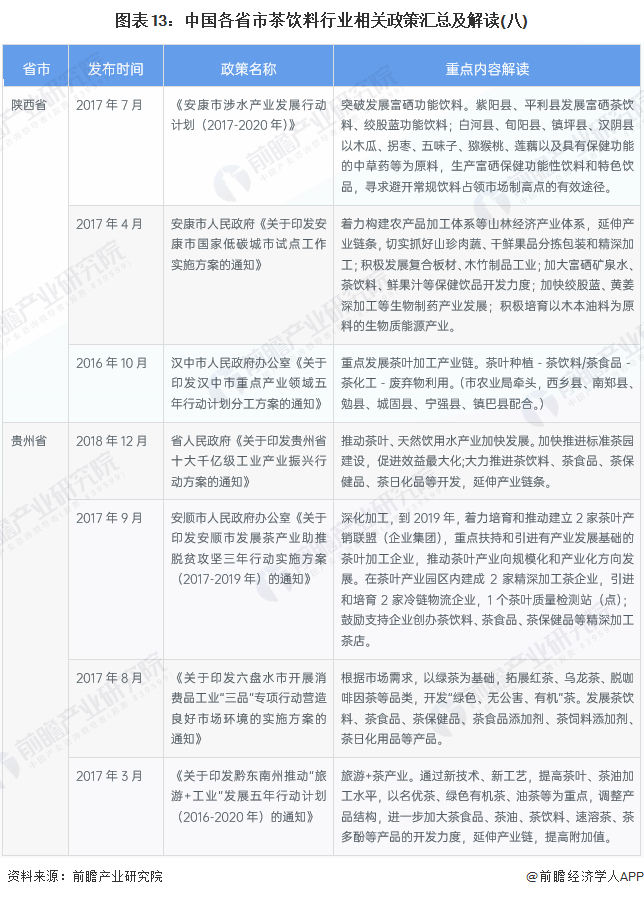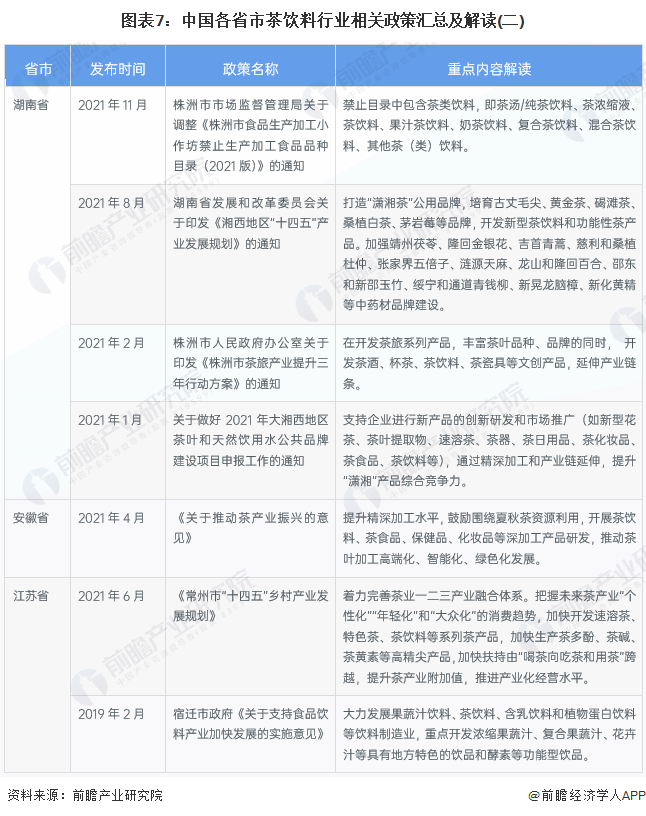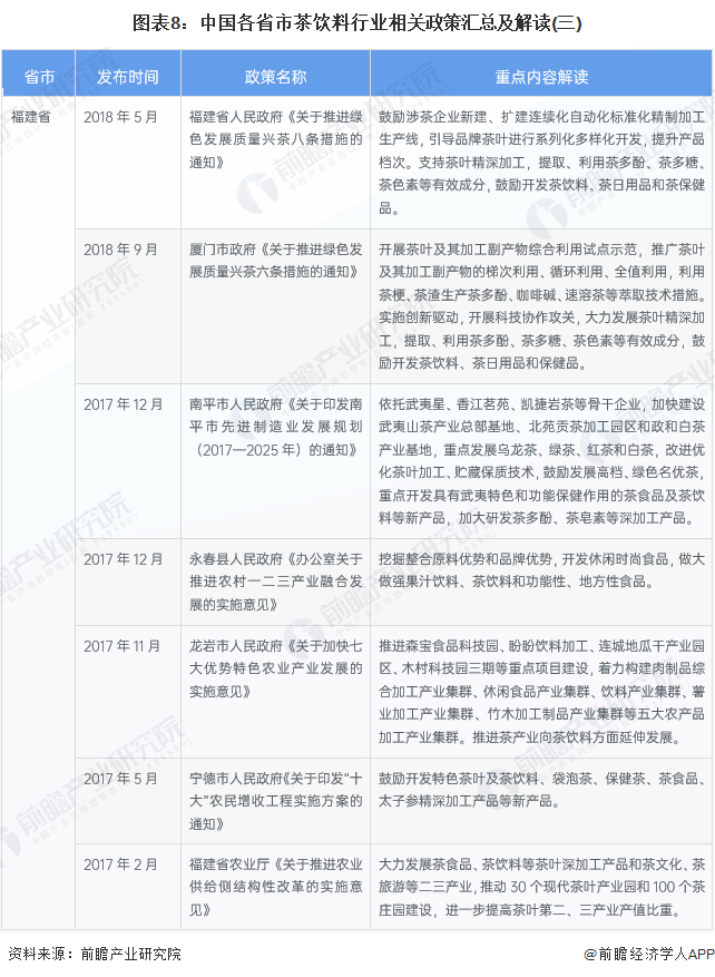 ——31省市茶饮料行业政策汇总