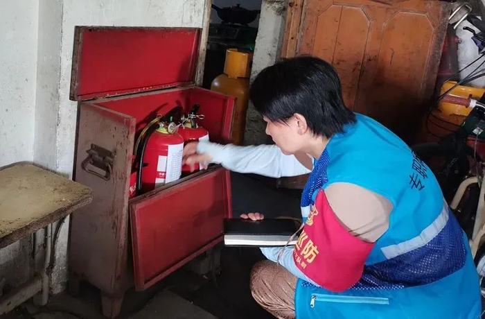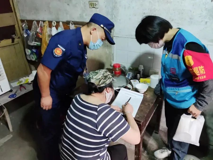 在整治中,发现自建房中的出租房普遍存在集中供他人居住,部分房间灭火器、手电筒、安全绳、防毒面具等“四件套”未配置齐全等消防安全隐患,消防检查人员与派出所民警当场告知其危险性,并发放责令限期整改通知书。