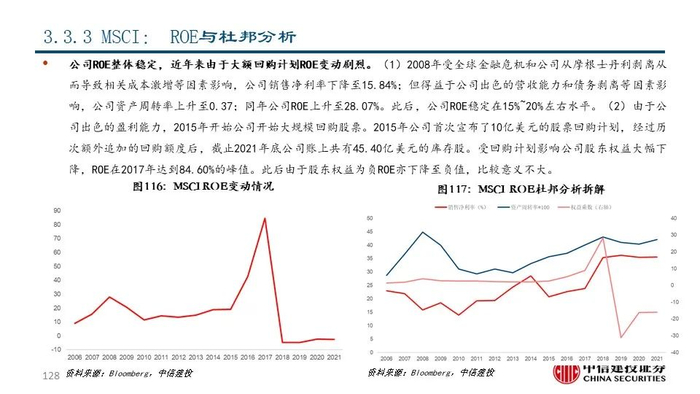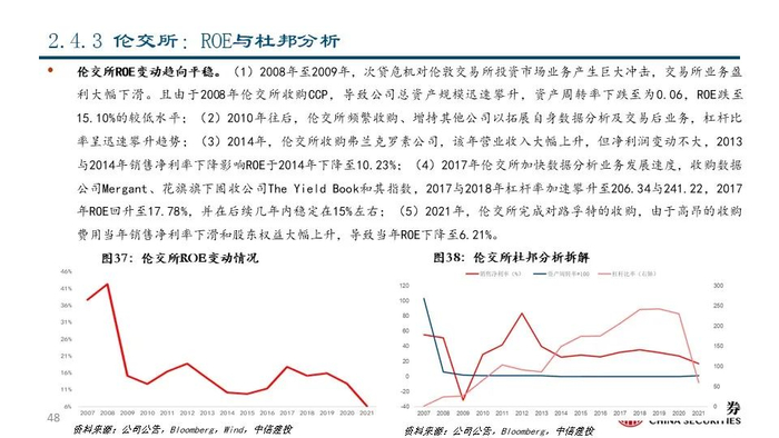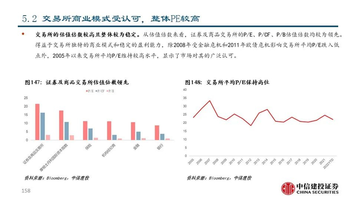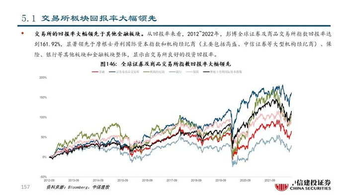 我们坚信,长期来看,交易所和解决方案公司商业模式优,盈利能力强,是非银与金融科技大板块值得核心关注的行业。1)过去10年,证券及商品交易所板块和金融信息服务板块回报率达161.92%,显著优于摩根士丹利国际资本指数的113.83%和金融板块整体的64.14%;2)近年来交易所和解决方案公司的盈利水平和估值水平均不断抬升,彰显出市场对其盈利能力的充分认可和给予的较高溢价水平。