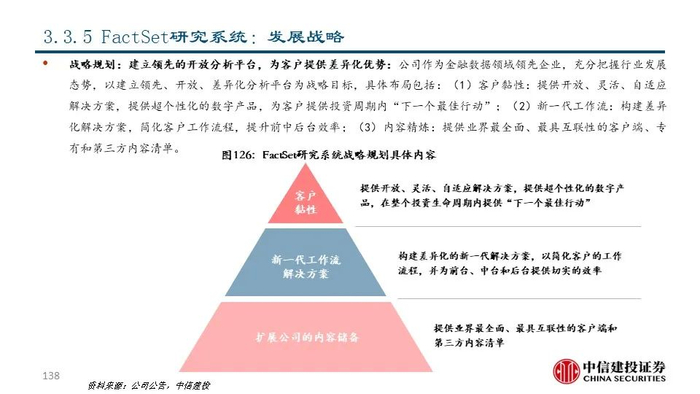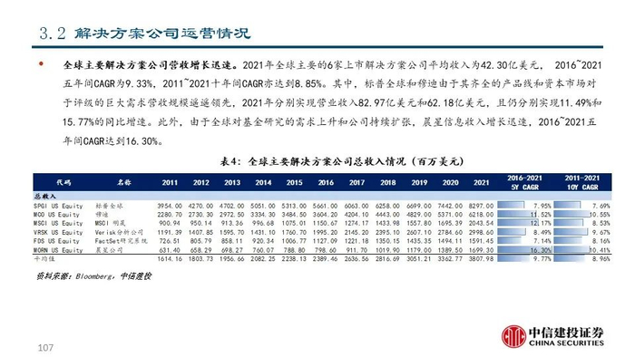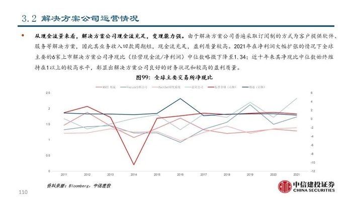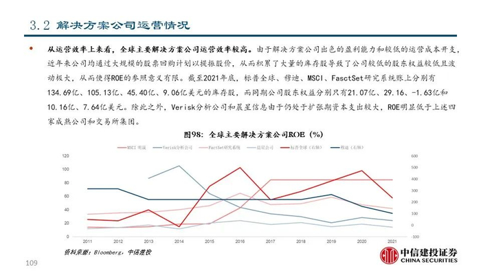 近年来随着金融体系的不断完善和财富管理行业的不断发展,解决方案公司围绕投资者关键流程为其提供一系列数据及解决方案从而为投资决策赋能,业务链条不断延伸,收入质量稳中有进。