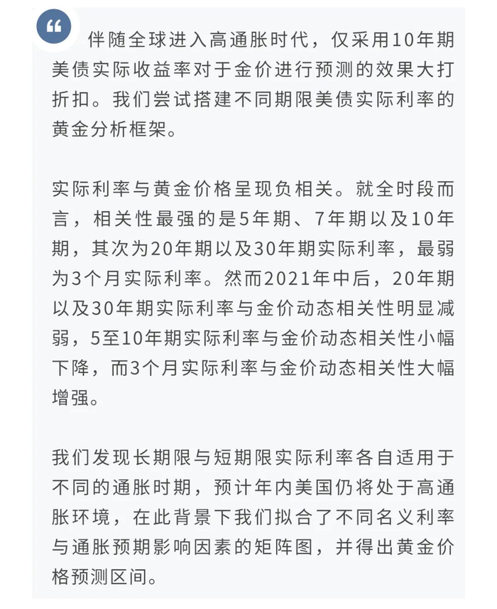 【今日推荐】不同期限实际利率与黄金相关性探究—金价预测的改良模型
