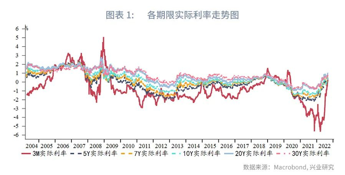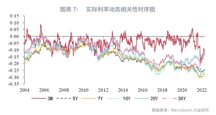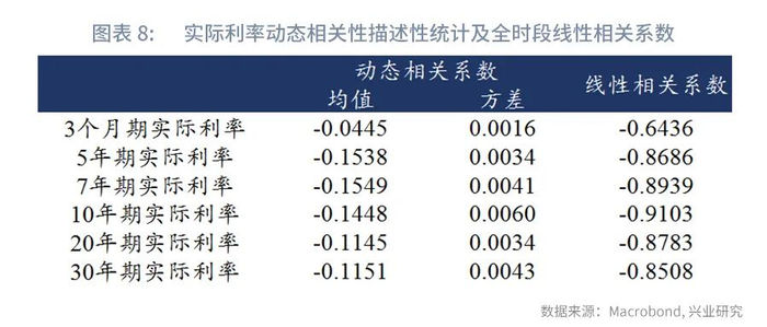 短端实际利率方面,Khramov(2013)认为,美国3月期国库券利率与1年期调查通胀预期的差值可以表征短端实际利率。该短端实际利率与上述5种中长期实际利率共同构成我们的分析样本。