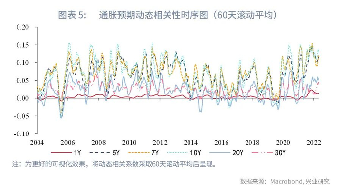 直至2021年中之后,20年期以及30年期实际利率与金价动态相关性明显减弱,5至10年期实际利率与金价动态相关性小幅下降,这三个期限中10年期下降最为明显,而3个月实际利率与金价动态相关性大幅增强。分名义利率和通胀预期具体区分,2021年中之后中长端实际利率与金价动态相关性的下降主要源于名义利率,3个月实际利率与金价动态相关性的明显抬升中名义利率和通胀预期都做出了贡献。