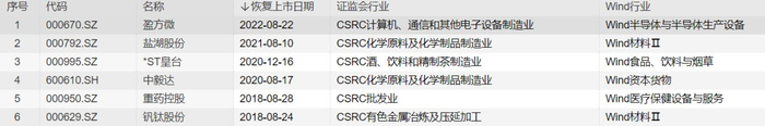 近五年恢复上市企业