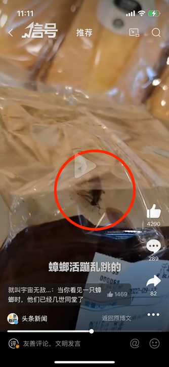 沃尔玛面包出现蟑螂,专家:食品安全没有可商量余地