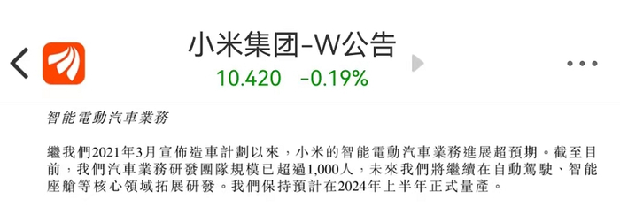 今年3月22日,小米在2021财年报表中披露,小米造车研发团队规模已超过1000人,首款车将在2024年上半年量产。8月,雷军在小米年度演讲中,首次对外公开了自动驾驶技术路面测试实拍视频,并宣称“2024年小米将进入自动驾驶第一阵营”。据介绍,小米自动驾驶项目第一期研发投入已花费33亿元,专属团队的规模已超过500人。