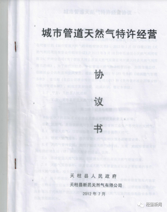 2012年7月25日,天柱县新昆公司和天柱县人民政府签订了《城市管道天然气特许经营协议书》,并开始了漫长的天然气供应管道建设。
