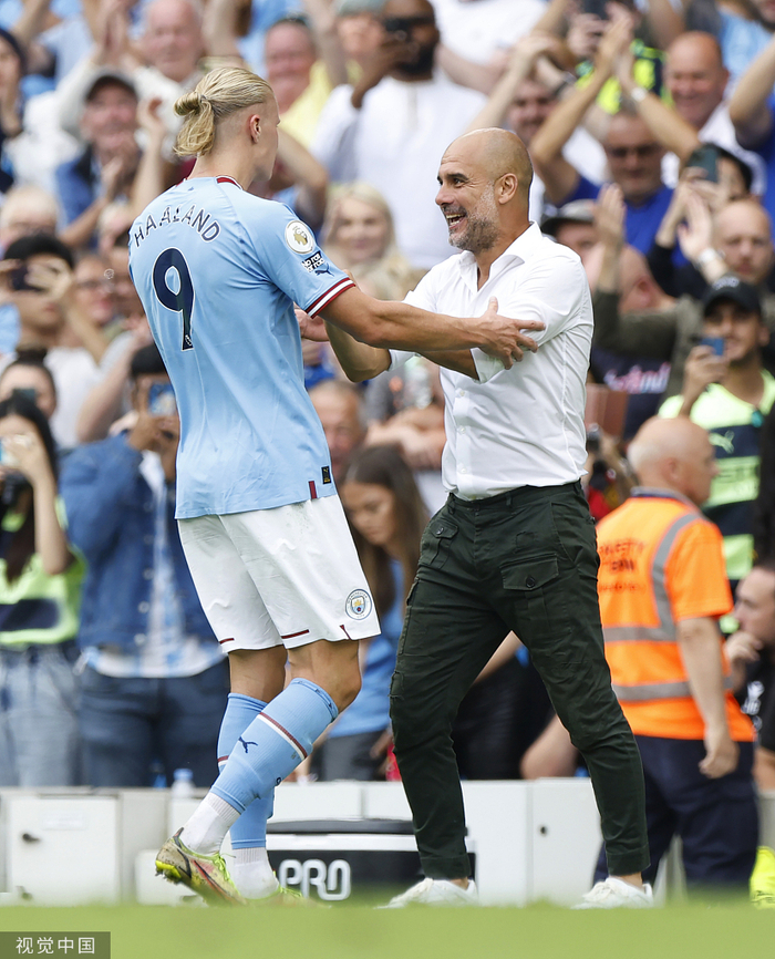 瓜迪奥拉和他的团队,非常满意哈兰德的整体表现,不论他的跑动还是他的临门一脚。