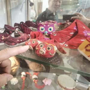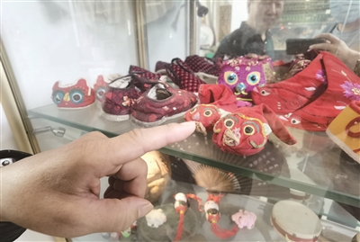 走进展室,里面大大小小陈列着各式各样的村民日常生活用品。“这是展室接受的第一件捐赠品,是长辛店一位70多岁老师捐赠的,是他满周岁时穿的鞋子,做工精良。”尹喜军指着一双红色刺绣的鞋子说。