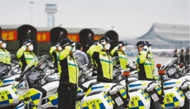在骑警护卫下,载着88位烈士遗骸棺椁以及837件相关遗物的专车缓缓驶出机场,前往沈阳抗美援朝烈士陵园。