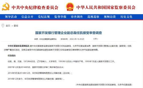 16日晚间,据中央纪委国家监委驻国家开发银行纪检监察组、北京市纪委监委消息:国家开发银行管理企业副总裁(副职级)任凯涉嫌严重违纪违法,目前正接受中央纪委国家监委驻国家开发银行纪检监察组纪律审查和北京市监委监察调查。