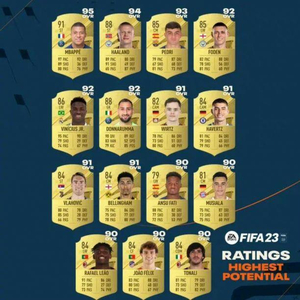 FIFA23球员潜力值top15:姆巴佩95居首,哈兰德94第二