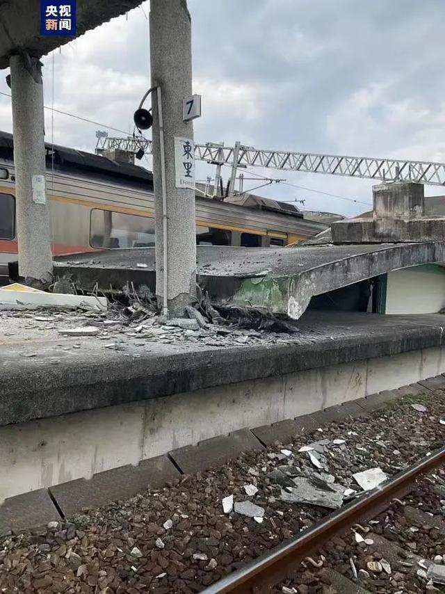 花莲东里车站的雨棚被震垮,