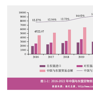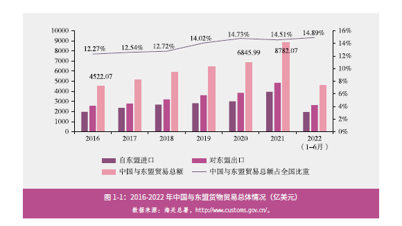 2021年中国与东盟货物贸易同比增长28.28%,中国连续13年保持东盟第一大贸易伙伴地位,东盟连续2年成为中国第一大贸易伙伴。