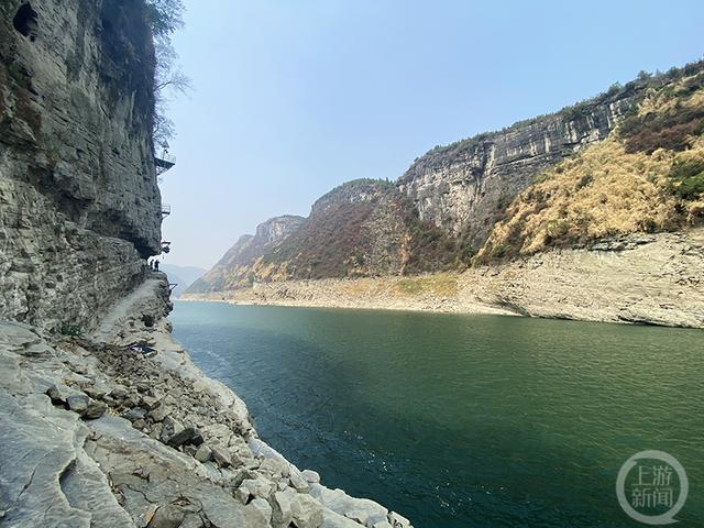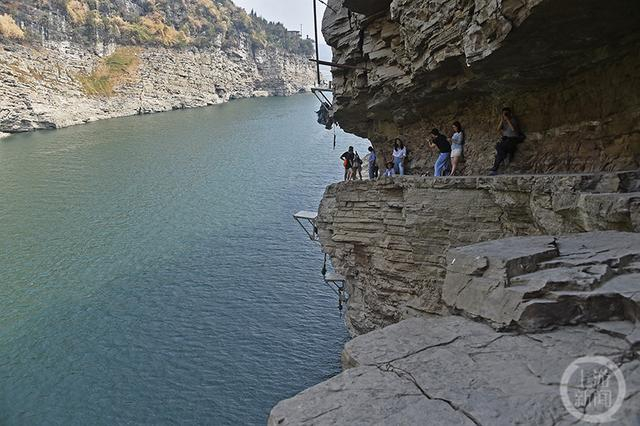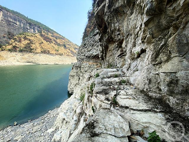 今年,由于天气原因,乌江水位下降,原本被淹没的栈道露出水面。