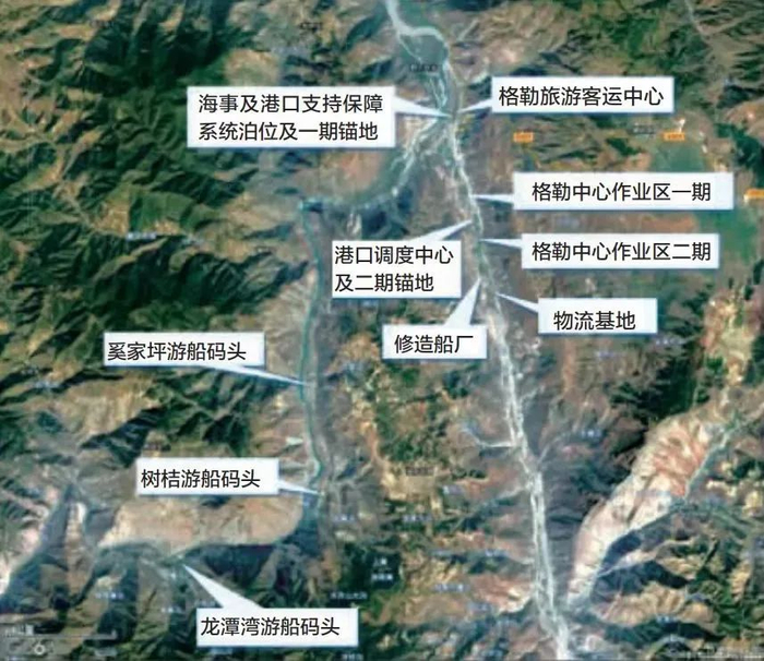 “目前开展的是东川港(一期)工程建设,主要包括东川港格勒中心作业区一期工程、格勒旅游客运中心一期工程和奚家坪、树桔、龙潭湾3等座旅游码头、东川港进港航道一期工程、格勒中心锚地一期工程、海事及港口支持保障系统泊位。”