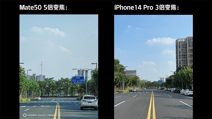 Mate 50与Mate 50 Pro的影像区别不大,主要不同在于长焦。接下来的环节,依旧与刚刚发布的iPhone 14 Pro进行对比,两款产品都是目前热度颇高的旗舰手机。