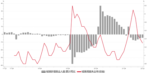 图 16失业率有所好转,但城镇新增就业人数仍处于负增长