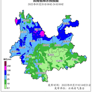 9月20日:昭通南部、曲靖北部、昆明北部、楚雄北部、丽江东南部阴有中到大雨局部暴雨。