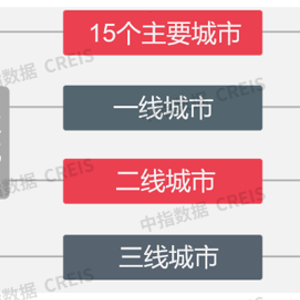 二线代表城市成交面积环比下降16.5%。分城市来看,南京下降41.5%,温州次之,为35.4%,济南涨幅最高,为12.5%。同比来看,二线代表城市整体下降55.4%,南京下降49.1%。三线代表城市成交面积环比下降5.4%,同比下降33.1%。