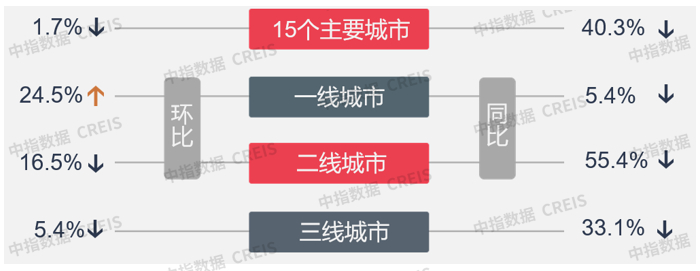 ▌各线城市:一线城市供应量环比倍增,二线城市成交上扬