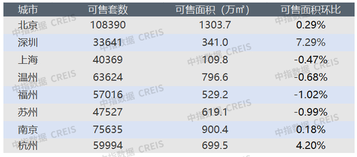 ▌库存:库存总量略有上涨,深圳、杭州可售环比涨幅较大