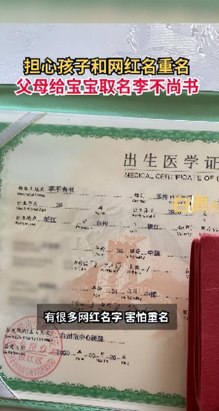 谐音梗?浙江父母怕重名给儿子取名“李不尚书”,全家不认可,孩子爸爸:蛮特别,我们不打算换