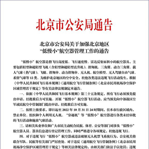 北京市公安局关于加强北京地区“低慢小”航空器管理工作的通告