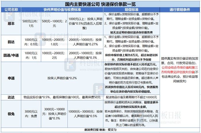 面对大量发生的此类事件,快递公司相关保价条款又是如何规定的?新消费日报简单梳理了国内主流快递公司的相关条例。