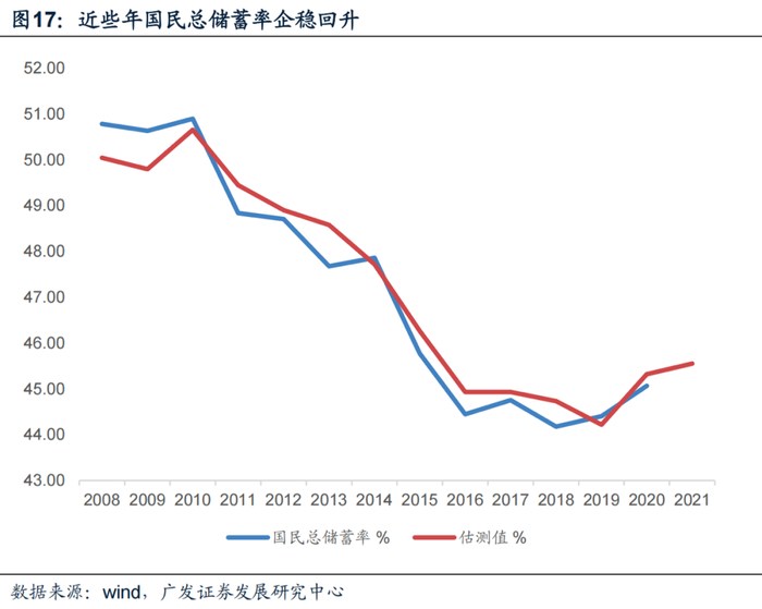 从高货币供给与低名义增长、货币沉淀在银行存款账户形成私人部门高储蓄这一现象,我们能得到的两个相对确定的结论是:(1)私人部门储蓄增长带来了国民储蓄率的企稳回升,这在经济学逻辑上对应均衡状态下投资率的上升,后续政策如何激活储蓄率,推动储蓄率向投资率转化是关键,它将带来实际增长重新回归均衡,并决定价值风格回归的节奏与时点;(2)推动经济回归均衡,储蓄率向投资率转化的过程将带来内部工业品需求的回升,在供给端产能过剩问题已经得到解决的背景下,工业品需求的回升对应通胀弹性与中枢的回升,除了实际增长预期的修正外,这可能是中长期视角下低利率向均值回归的另一潜在力量。