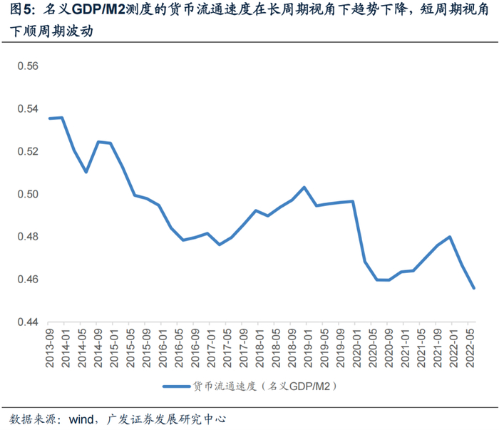 尤其是在经济衰退时期,微观主体对货币的偏好会明显提升,货币会更多发挥价值贮藏职能,而不是在实体与金融市场上用于交易。