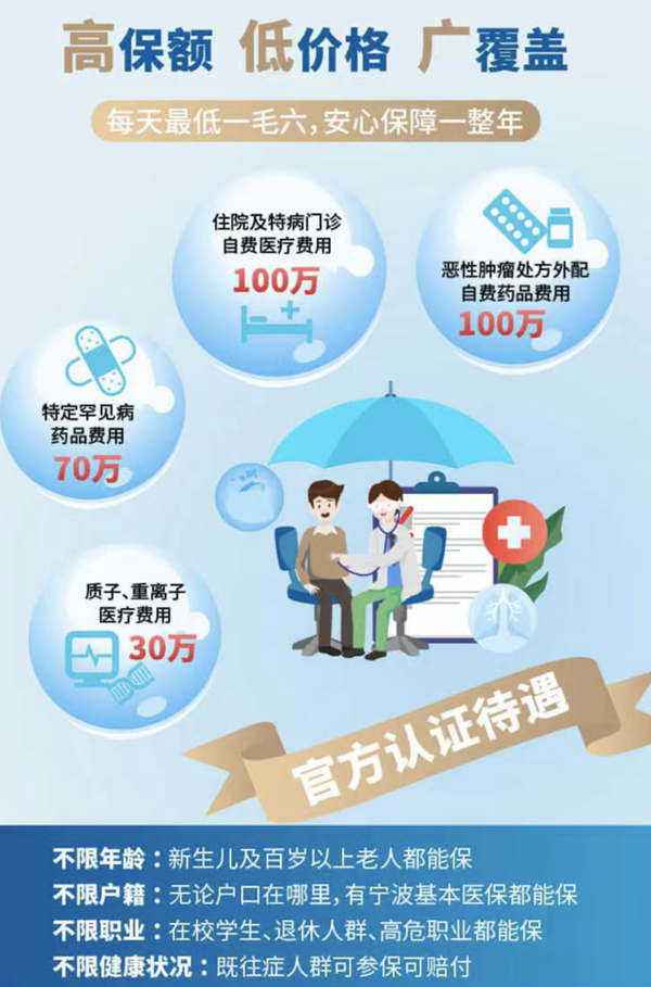 天一甬宁保开放参保!保费低至100元可在宁波甬惠保平台一键办理