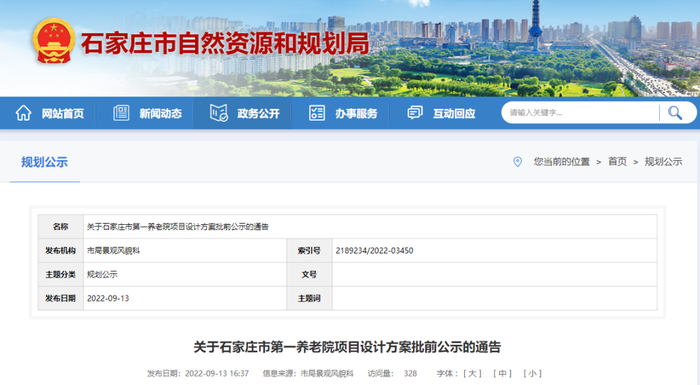 通告显示,该项目位于体育大街以西、蓝月路以南、市老年养护院以东,用地性质为社会福利用地。