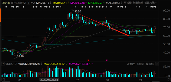 这里要对赛力斯还不了解的读者说一下,赛力斯的原名就是小康股份,就是那个跟华为有着各种传闻与合作,过去两年股价涨了10倍以上的小康股份。在今年7月底8月初的时候,公司名字由小康股份正式更名为赛力斯,并且换了企业标识。