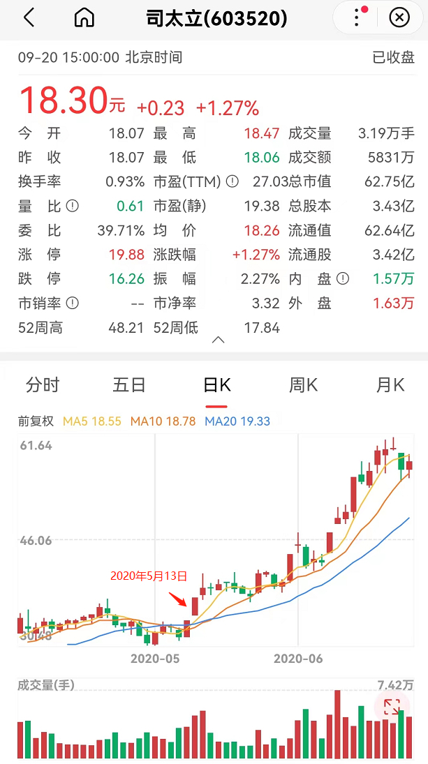 2020年4月29日至5月11日,刘某账户单一买入4.55万股司太立,在5月13日全部卖出,获利45万元。而5月13日正是合作消息宣布的次日,当日司太立股价实现涨停(10%)。