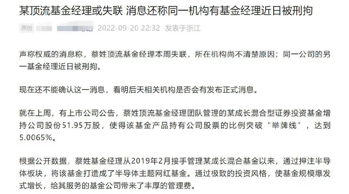 蔡姓顶流基金经理失联?本人深夜回应