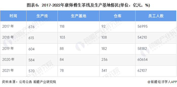 从公司生产线及生茶基地情况来看,2017-2021年公司生产线和生产基地在逐年下降,但仓库和员工人数逐年上升,这反映了公司单条生产线效率提高,生产能力提升,生产线及生产基地数量相对减少。