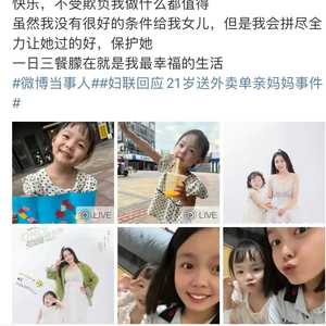 21日下午,这位单亲妈妈发微博回应称,保护女儿的一日三餐,就是最幸福的生活。