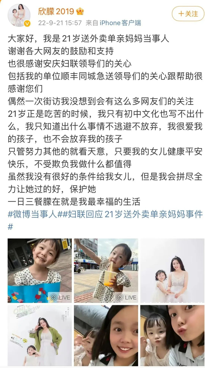 原标题:21岁单亲妈妈送外卖,全网心疼!本人回应了