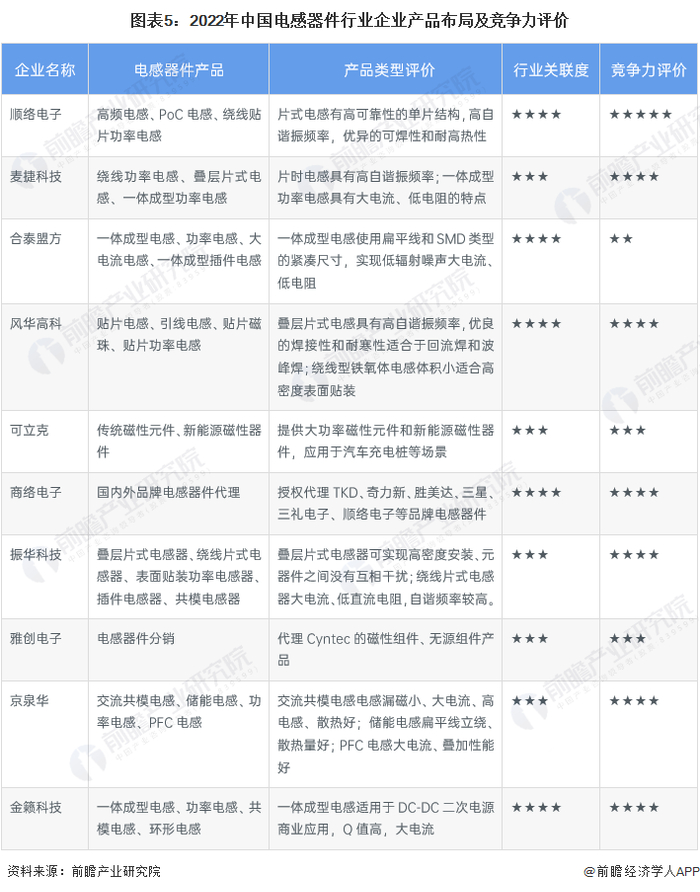 4、中国电感器件行业企业布局及竞争力评价