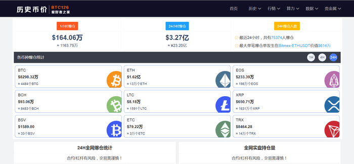 据BTC126实时数据显示,虚拟货币合约一日内共爆仓超23亿元人民币,最近24小时共有75291人爆仓,其中最大单笔爆仓单发生在Bitmex-ETHUSDT价值614万美元。