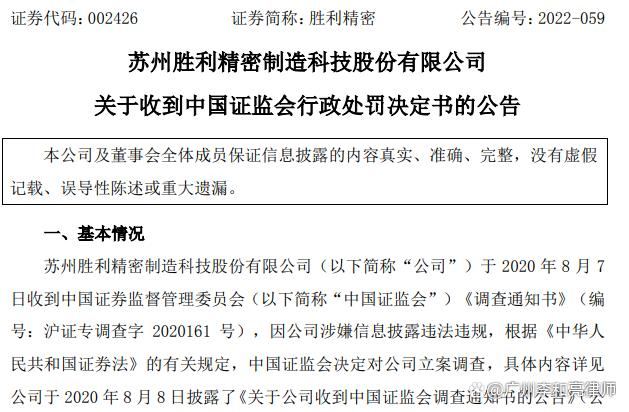 胜利精密(002426)正式处罚落地,投资者索赔案已开庭