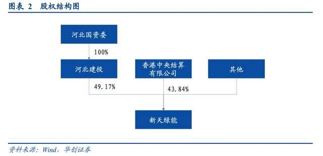 截至2022H1,公司控股股东为河北建设投资集团有限责任公司,河北省国资委通过河北建投间接持有新天绿能49.17%股份,为公司实际控制人。香港中央结算有限公司持有公司43.84%股份,河北国资委与香港中央结算公司共计持有公司93%的股份,持股相对较为集中。