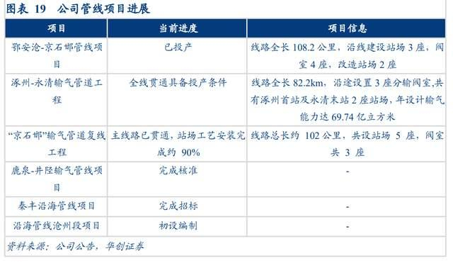 积极扩张管线布局。项目推进方面,“京石邯”输气管道复线工程(全长约102公里)主线路已贯通,站场工艺安装完成约 90%,鄂安沧-京石邯管线项目(全长约108公里)已建成投产,涿州-永清输气管道工程(全长约82公里)全线贯通具备投产条件。随着后续秦丰沿海管线等项目的建成,公司管网运营长度有望进一步提高,覆盖范围有望进一步扩大。