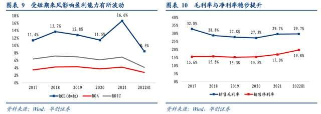 2017-2021年毛利率和净利率稳步提升,2022H1盈利能力有所波动。