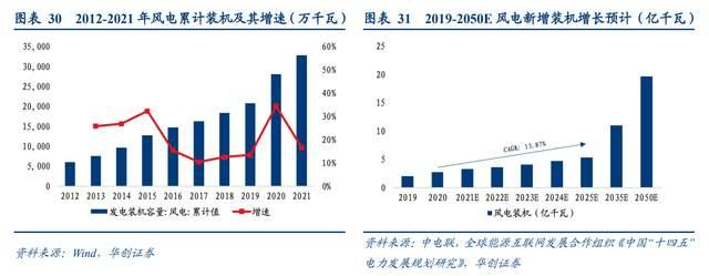 随着《关于完整准确全面贯彻新发展理念做好碳达峰碳中和工作的意见》这一碳中和顶层政策的落地,碳中和政策落地叠加补贴时代落幕,未来行业会以更加稳健的方式增长,成长性将进一步凸显。据全球能源互联网发展合作组织测算,2025年国内风电装机预计将达5.4亿千瓦,十四五期间风电装机CAGR可达13.8%。