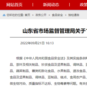 中国质量新闻网讯 2022年9月21日,山东省市场监督管理局网站发布关于17批次食品不合格情况的通告2022年第33期(总第378期)。据通告,该局对1236批次食品样品进行了监督抽检。其中,抽检酒类40批次,全部合格。